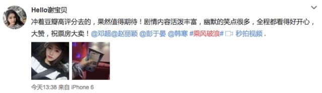 不仅是普通观众,许多明星大腕如导演曹保平,演员赵薇、王源、霍思燕、章子怡等人看过《乘风破浪》后,都表示这是一部十分优质的喜剧电影。