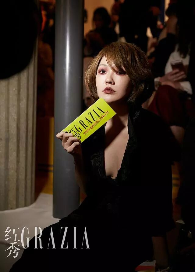 首战告捷后,同年10月第二度降临时装周的小S,这一次来到了巴黎。无论是妆容还是造型都显得更加随心所欲为所欲为。终于在Miu Miu的大秀现场,造就了这款引起时尚界恐慌的阴郁造型。