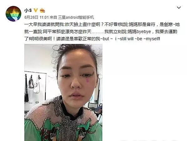 的确,小S用自己震惊四座的毁灭行为,告诉大家,无论是“IPSS”还是路人甲,谁都有过披头散发的时候。谁说一定要为了某一个特定场合,用力打扮,甚至穿成自己并不喜欢的样子。