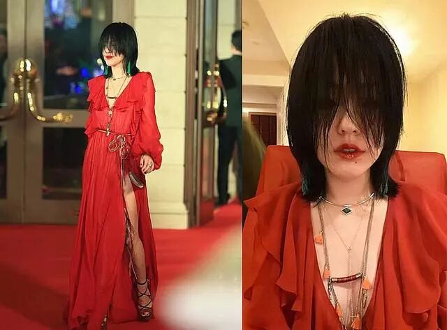 并带着这款大胆的造型,走上2016年华语榜中榜的红毯。随心所欲的血红色长裙,让溢美之词泛滥的时尚博主们,一时间集体语塞。披头散发的造型,打得其他精心拗造型的女明星一个措手不及。