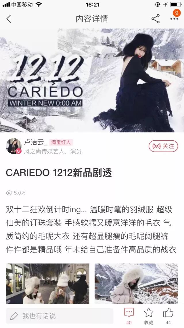 达人指数:达人“卢洁云_”在本期淘宝图文类带店达人榜单中名列前茅,与上期榜单相比进步神速。点击查看本期带店达人榜 >