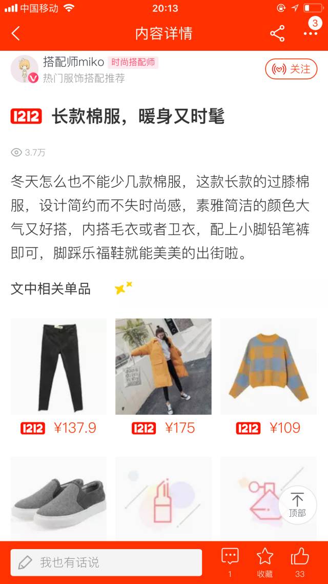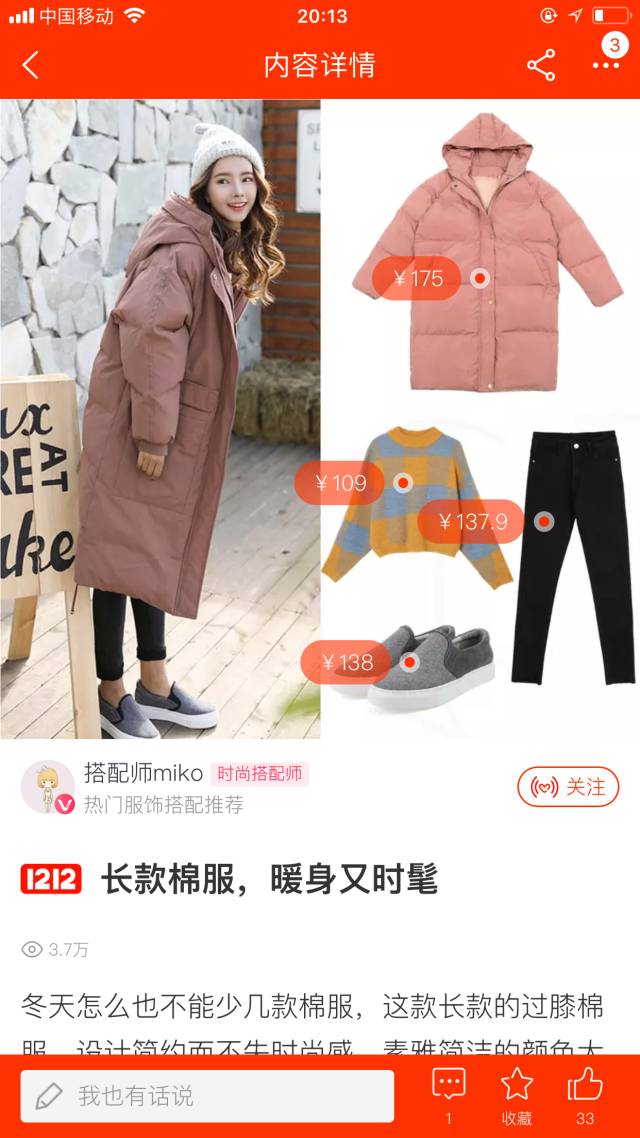 达人指数:达人”搭配师miko“在本期淘宝图文类女性时尚领域榜单中名列前茅。点击查看本期达人榜>