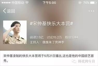 宋仲基录制快乐大本营话题也是两亿多阅读量