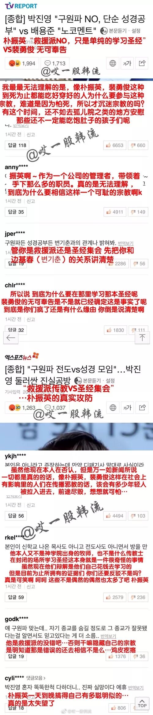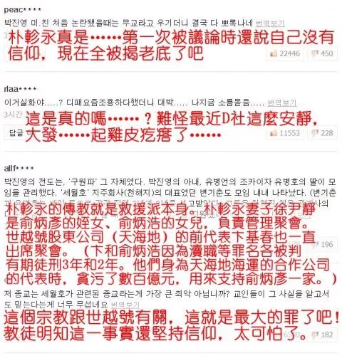 但是,因为“救援派”和“世越号”在韩国是非常严重且敏感的话题,而且朴振英一直以来都宣扬自己是无教派,所以网友根本不信这个无力的辩解。
