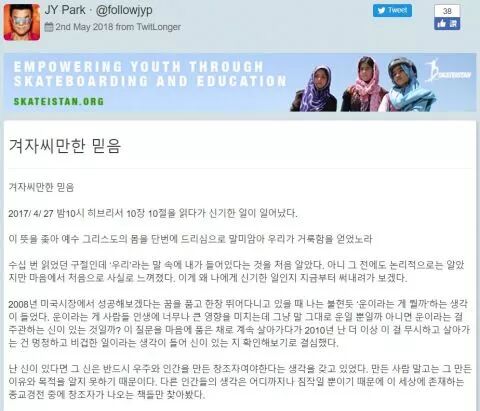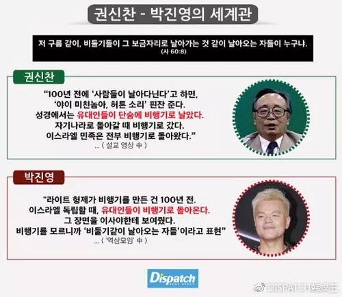 但是在D社爆料的时间线中,朴振英早在2012年就与“救援派”实质教主权信灿及俞炳彦有来往,而且当时已经与前妻离婚。朴振英还在传教聚会中说,“2012年10月,我成为了新的人”、“重生是在2017年4月27日,我获得了名为信仰的礼物。”