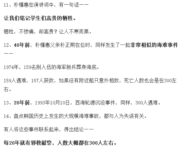 最近的这次“世越号”事件也是死了304人。每20年就有300人因为海难失去生命,让韩国民众不得不往一些阴谋论上猜测。