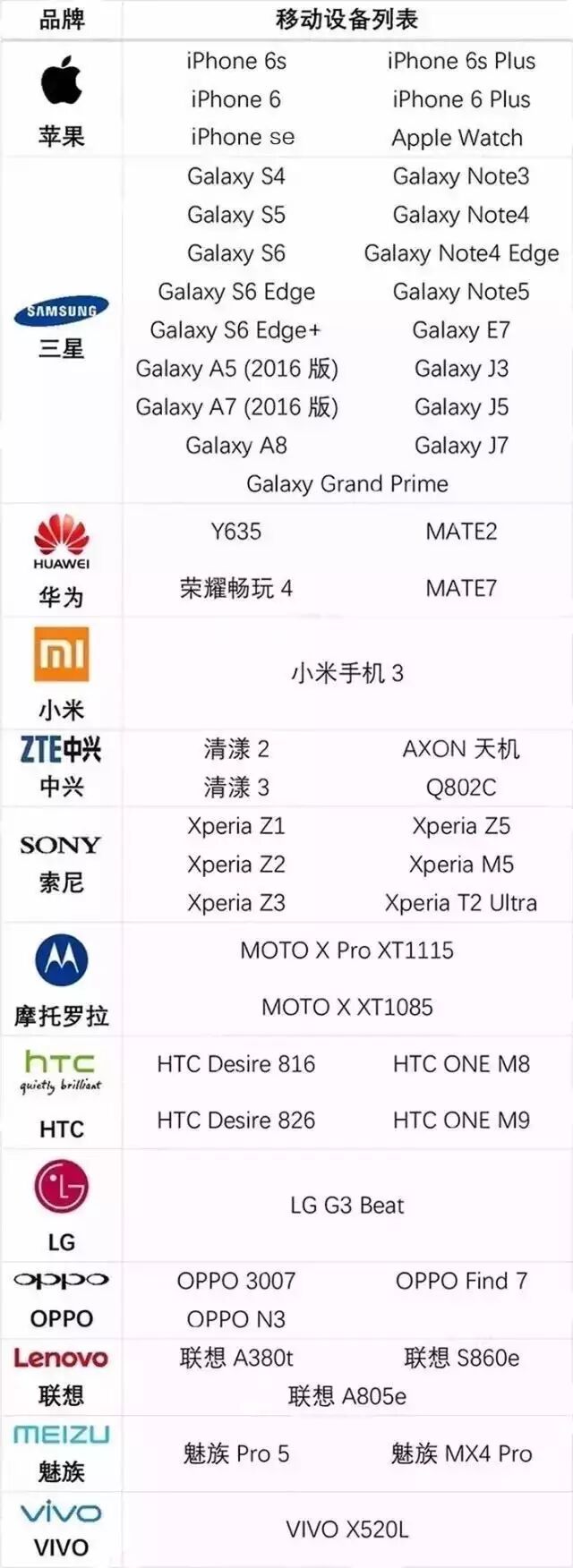 以下这些手机都可以绑定哦!
