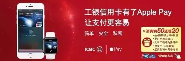 工行卡绑定Apple Pay、Samsung Pay或工银HCE云闪付还可享受以下优惠!