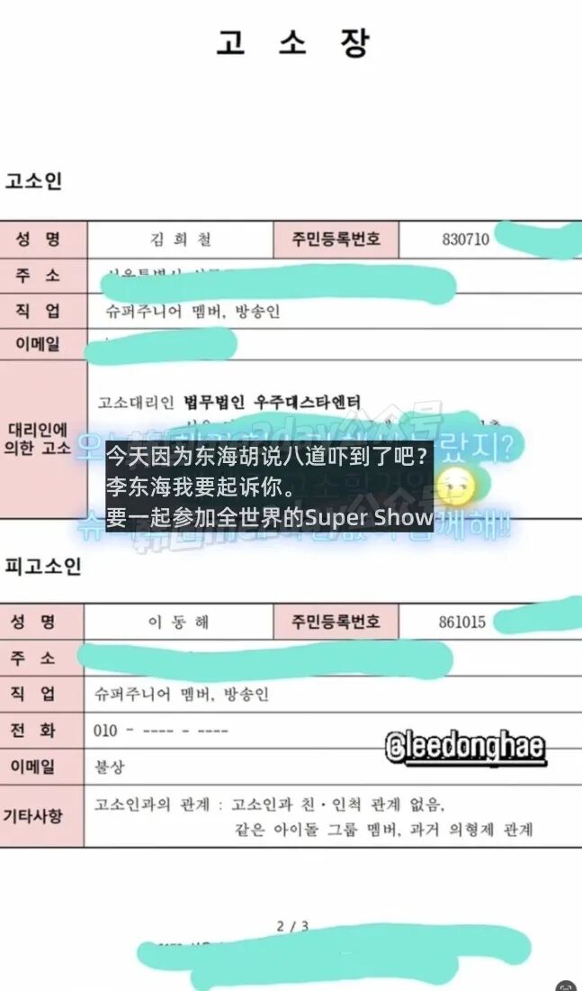 此前8月23日金希澈在ins story上传了自己制作的假诉状照片,并配文“今天因为东海胡说八道吓到了吧?李东海我要起诉你。要一起参加全世界的Super Show”。之后东海在自己的账号上发文称“竟然敢起诉我?就算哥哥真的起诉我,我也爱你,我们要一起”。