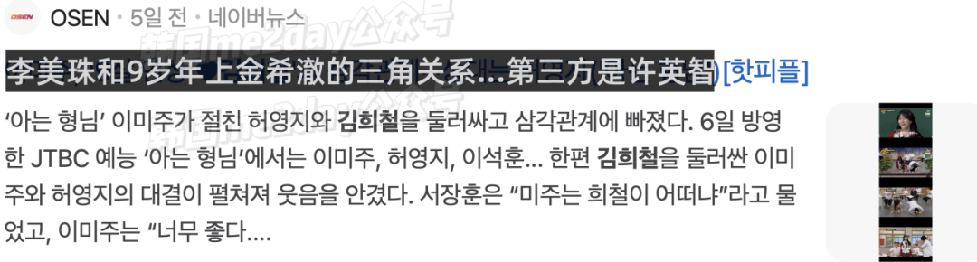 对此金希澈借这件事也提到了其他传言,例如《认识的哥哥》节目中“李美珠母亲对金希澈很满意”、“李美珠、金希澈、许英智三角关系”、“金希澈和忠州男绝交”等,他表示这些都是节目效果。
