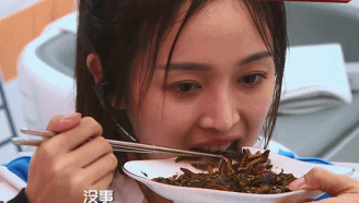 看着队友们一个接一个的吃下大麦虫,吴宣仪开始进入“崩溃”模式,甚至一度出现“幻觉”~~~