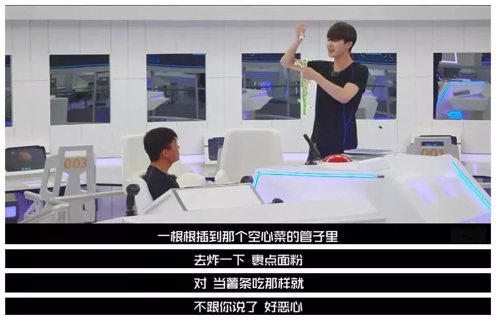 这边的朱正廷脑洞开到飞起,一道“油炸空心菜卷面包虫”做法说的正正自己都恶心到了,少年你怎么这么优秀~~