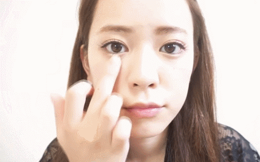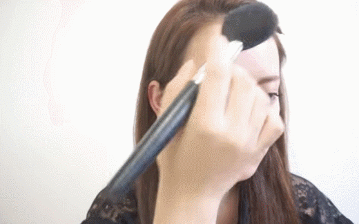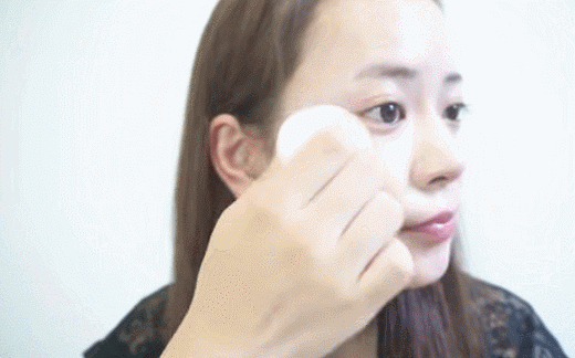用高光粉轻轻打在脸颊、泪沟的位置,