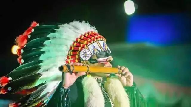 他的演奏乐器主要是南美的排箫、盖纳笛、CHAJCHAS(一大串摇着的东西,我不知道这个怎么翻译)、一个像口杯一样的玩意,还有一些我根本叫不出名字的乐器,和他自己原生态的呐喊,充满印第安文化元素的服饰打扮让人印象深刻。