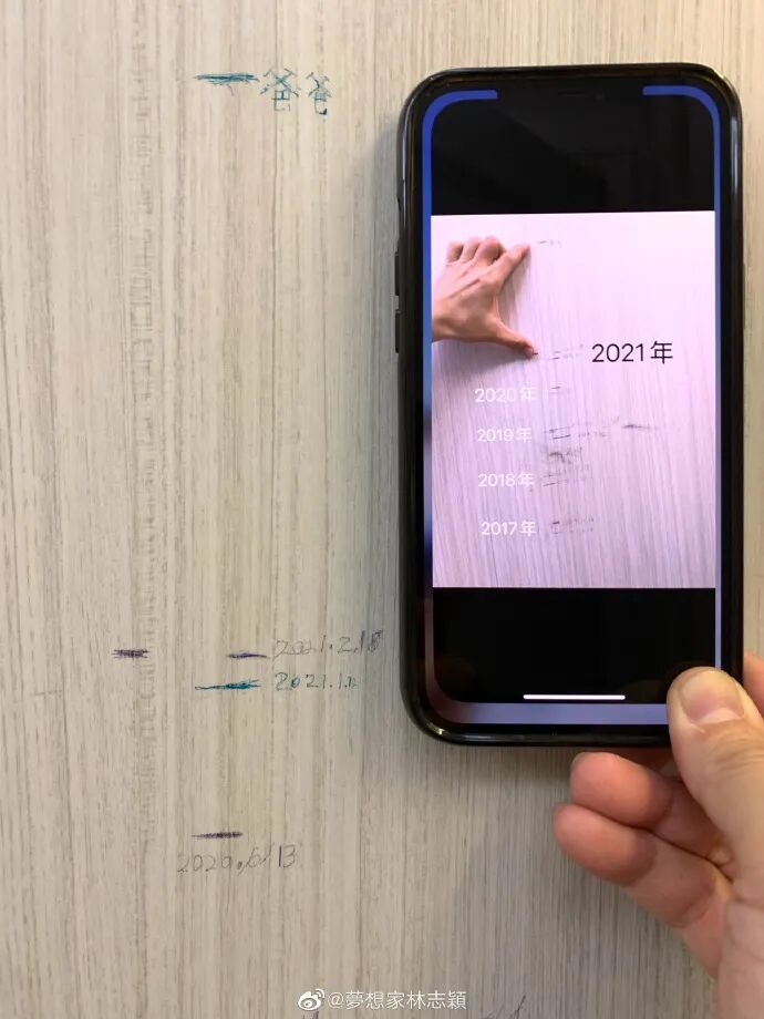 图中可以看到家里专门给kimi设立了一个量身高的位置,上面均匀地分布着kimi的身高走向,看来,小家伙的身高增长速度一直很平稳。