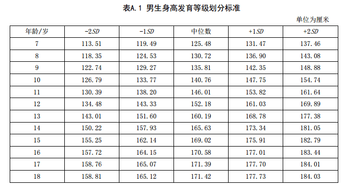 注:参考表中的“中位数”,表示处于人群的平均水平。如果在(-1sd~中位数~+1sd)属于“正常范围”;如果在(-2sd~-1sd)或者(+1sd~+2sd)属于“偏矮/偏高”;如果在(-3sd~-2sd)或者(+2sd~+3sd)属于“矮/高”。