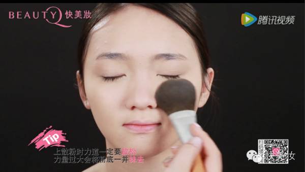 最后轻扫上一层定妆粉定妆,这样能保持妆容更加持久哦~