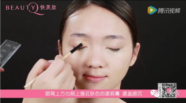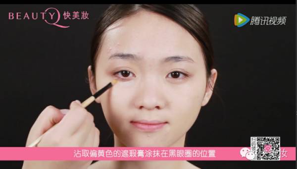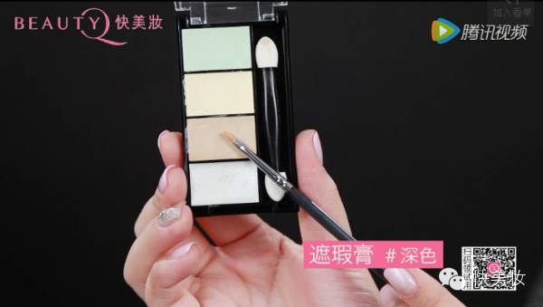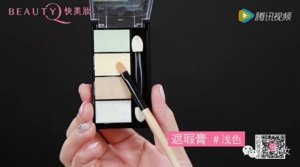 用刷子沾取如图所示的遮瑕膏遮盖黑眼圈泪沟部位;