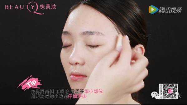 在做好妆前保湿后,用海绵沾取适量粉底液涂抹全脸
