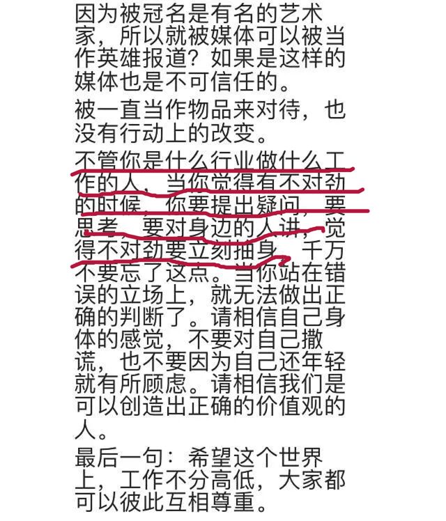 她们都在现场被强迫拍摄裸体照片。而事后涉及到的人对这件事的反应也出奇的统一:不要跟艺术家谈你自己的想法和权力,这是一件羞耻的事情,只有超越这些,艺术表达才会完美
