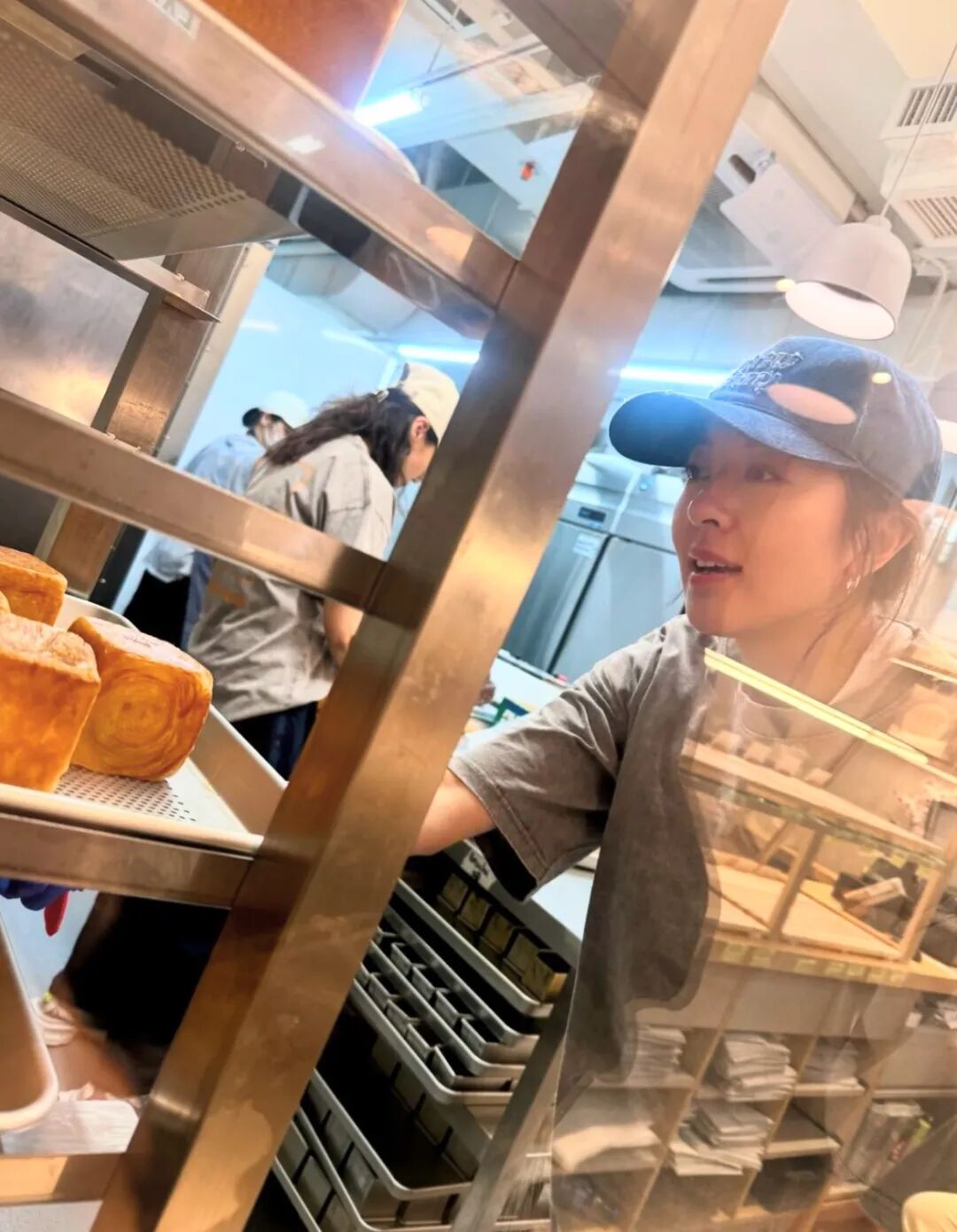 老板娘整面包都整到心满意足