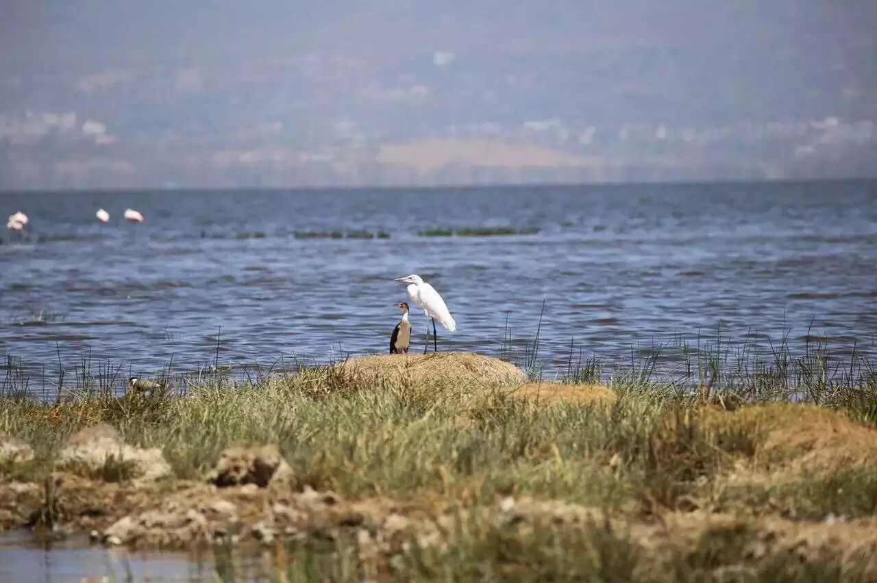 五年前的纳瓦沙湖还是陆地,但由于降水增多,就形成了湖泊,所以水面上有许多树干,看起来很颓废苍凉▼