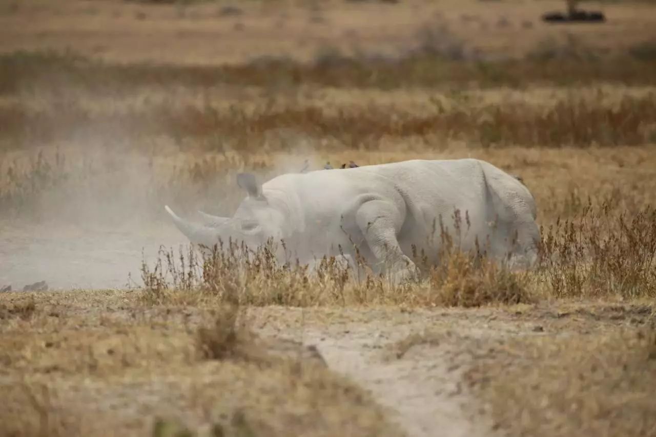 这只犀牛的镜头感我给满分,它居然对着我打!滚!了!▼
