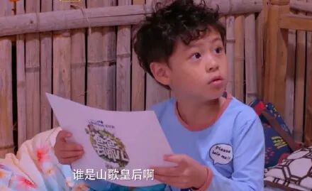 后来游戏环节,给了父子俩一张提示卡,上书四个大字:山歌皇后,蔡国庆一脸慈祥的问儿子,谁会是山歌皇后啊?