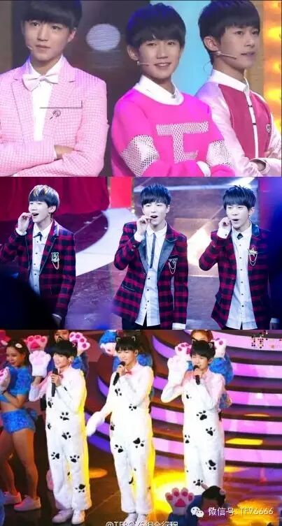 王俊凯、王源、易烊千玺造型百变,各种风格切换自如,不管是身穿格子西装的帅气王子还是身穿羽毛背带裤的“小精灵”,亦或是黑色红色皮衣的炫酷小子,总能让你目不转睛移不开眼。究其缘由,还是三小只的颜值爆棚,hold住所有服装。