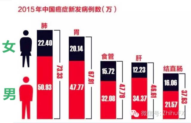 肺癌约占男性癌症发病率的四分之一,居首位;而位居女性癌症发病率第一位的是乳腺癌。