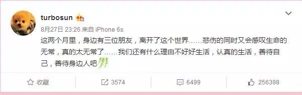 8月27日深夜,孙俪发文称:这两个月里,身边有三位朋友,离开了这个世界……悲伤的同时又会感叹生命的无常,真的太无常了……我们还有什么理由不好好生活,认真的生活,善待自己,善待身边人吧。