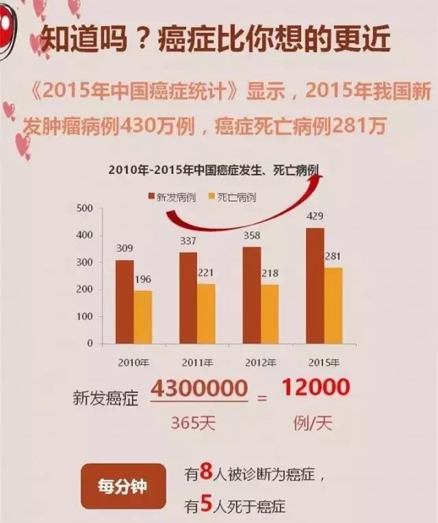 据中国之声《新闻晚高峰》报道,由国家癌症中心副主任赫捷院士、全国肿瘤登记中心主任陈万青等共同完成的《2015年中国癌症统计》,中国2015年新增430万癌症病例居全球之首, 肺癌居癌症死因之首。