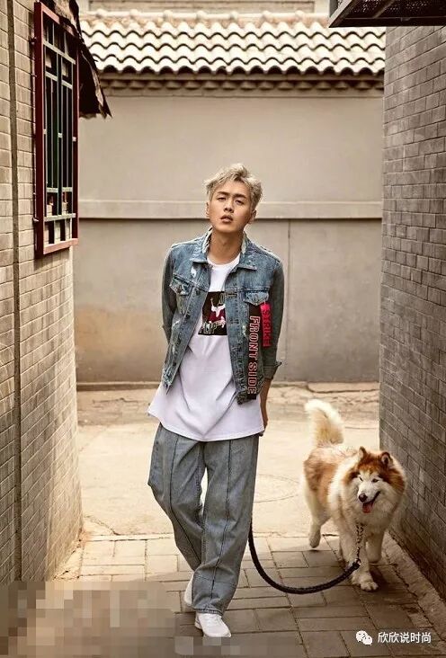接下来我们来欣赏欣赏张若昀其他的款式造型搭配啦,只见穿着一件白色的字母图案上衣搭配一条灰色的运动裤很帅气呢,光这一身简约的穿搭 就很时髦呢,外搭配一款蓝色的印花牛仔外套很吸晴呢,脚踩着一双白色的休闲鞋,在造型上一顶黄色的帅气的发型很帅气呢,精致的五官,从这个视觉上看起来痞帅痞帅的,魅力十足!