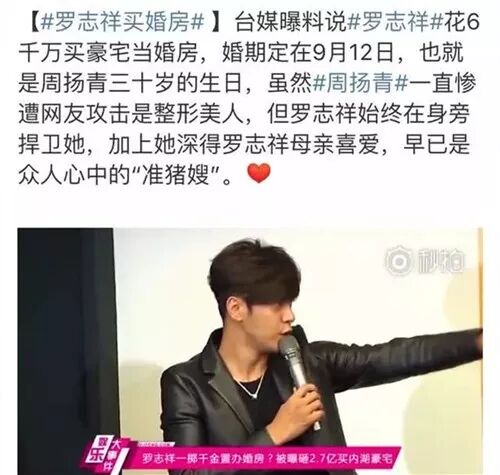 台媒还爆料两人婚期订在9月12日,当天是女友周扬青的30岁生日......