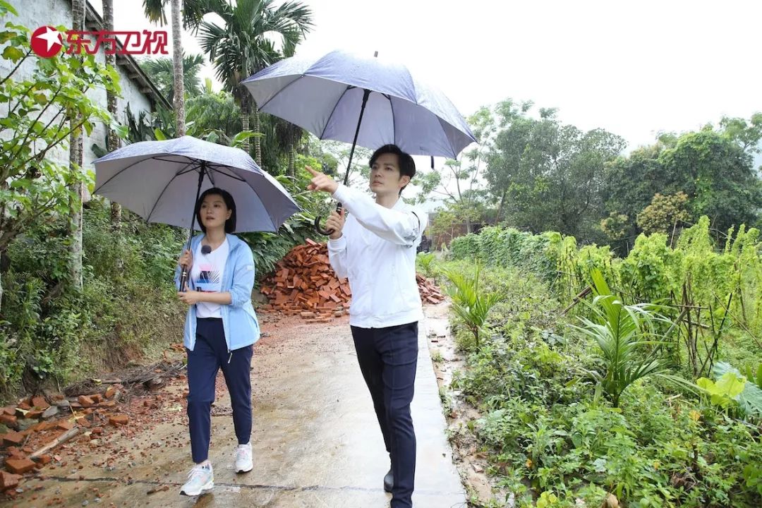 在淅淅沥沥的秋雨中,钟汉良和陈蓉撑着伞深一脚浅一脚地走访贫困户。对俄村正在进行危房改造工作,很多贫困户都住在搭着棚的临时屋子,这些简易房子无处下脚,钟汉良和陈蓉只好举着伞站在泥泞的小路上进行询问。雨势较大,绅士的钟汉良只顾着让村民小心别淋到雨,完全顾不上已在雨中奔波许久的自己。