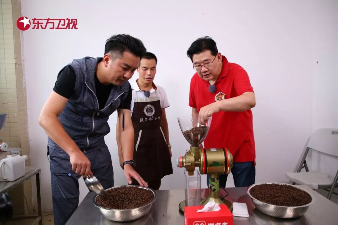经过一天的走访调研后,钟汉良、陈蓉和曹可凡、石哲元两组人马会合。曹可凡、石哲元在电商中心找到了陨石坑内的另一特色产品——咖啡,据说这是全世界种得最好的咖啡豆,这下“咖啡头号粉丝”钟汉良坐不住了,他可从来没有见过咖啡树,于是眼巴巴地盯着名誉村主任曹可凡,主动举手提出第二天要走访咖啡豆基地。