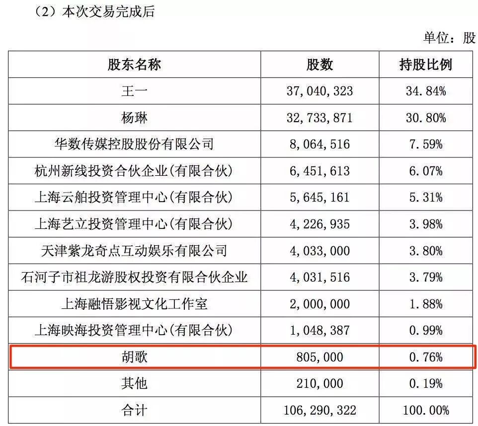 此外,今年3月开始IPO的唐人影视因拥有明星股东胡歌、古力娜扎而受关注。市界(ID:newsseeker)发现,胡歌和古力娜扎目前分列第八和第十二大股东,持股数量分别为263.1万股和21万股。根据公司股东大会5月通过的权益分配方案,唐人影视向全体股东每 10 股派 10元现金,相应两人可获得分红263万元和21万元。另外,在公司发布2017年中报时,胡歌持有股份还为80.5万股,剩余股份均为2017年下半年增持。