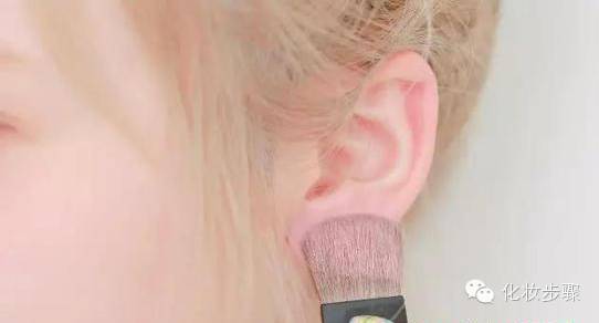 1、首先粘取少量腮红,轻轻的扫在耳廓上。