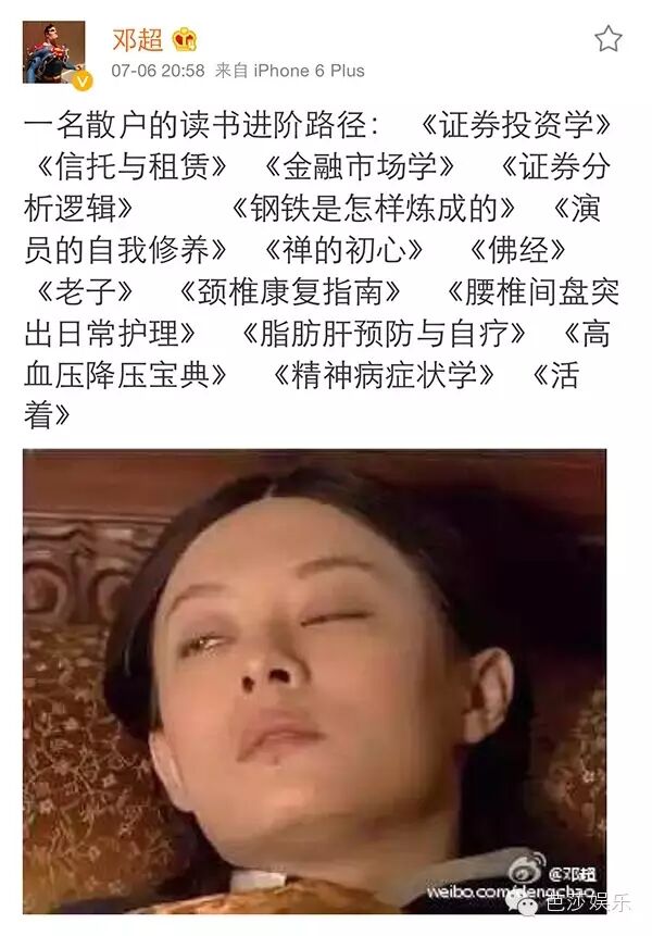然后前段时间股市低迷,邓超也不忘黑一下老婆,不知道当晚跪断几根搓衣板!