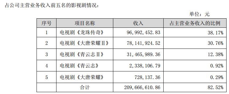 然而根据2017年年报,《龙珠传奇》和《大唐荣耀 2》未出现在占主营收入前五名的电视剧中。但上述两部电视剧在上半年的收入超过了电视剧《天枢之契约行者》、《盗墓笔记系列》全年的收入,理应在前五名之列。
