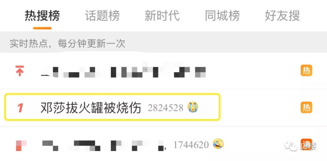如此大面积的烧伤引起了不少网友的关注,#邓莎拔火罐被烧伤#的话题迅速上了热搜第一。