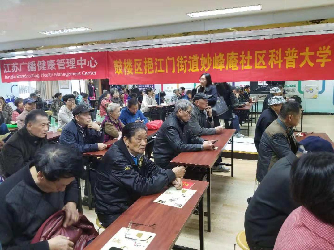 15号下午,江苏健康广播FM100.5/AM846《幸福社区》、《健康总动员》节目联合走进南京妙峰庵社区,为居民们带来一场关于“秋冬季养生之膏方服用”的主题讲座。主持人郭郭与来自江苏省第二中医院的朱益敏主任中医师,就秋冬膏方服用的注意事项与大家进行了精彩的分享,讲座内容贴近老年居民,通俗易懂,普及了中医知识,也提高了老年人的健康养生意识,起到了很好的宣传教育作用。