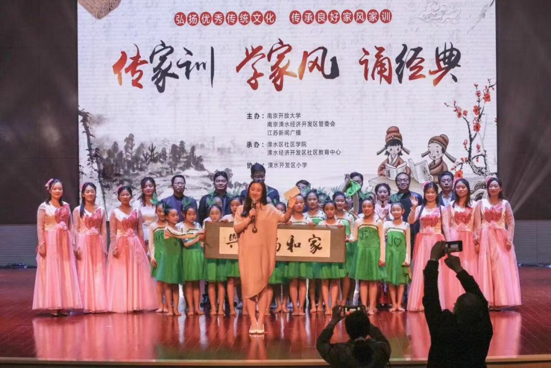 17号上午,江苏新闻广播 “学家训、传家风、诵经典”活动来到溧水。《夜谈古今》主播董婕主持活动。来自溧水区近100个家庭的300位社区居民参加了本次活动,用形式多样的节目展现优良的家训家风。敬茶礼仪、书法展示、诗朗诵、京剧表演等节目让现场观众领略了中华传统文化的博大精深,其中蕴含的思想精华、道德精髓更是展现了优良家风的魅力,从而引导大家从自身做起、从家庭做起,学家训、传家风。