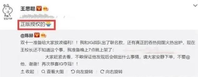 黄美熙现在成查无此人了,杨幂呢姑且算她手滑,倒是王思聪神奇地摇身一变,跟陈赫做起了哥们儿。在IG夺冠那次,陈赫起哄大兄弟吃热狗的表情包,说要做成联名款。