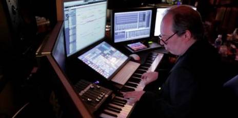 数不尽的天价话筒密密麻麻地支在半空,左下角就是披头士曾经在《Let it be》里使用的钢琴。