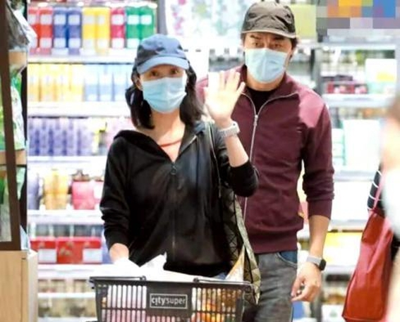 画面里,刘青云和郭蔼明穿着情侣装,戴着同款棒球帽,在超市货架前认真挑选商品!