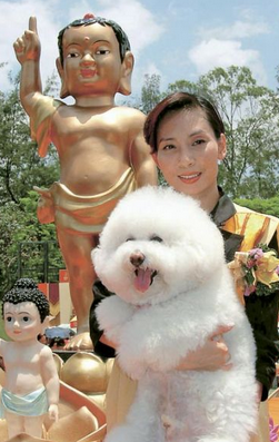 邝美云的爱犬叫Cash(现金),有点“俗”吧,不过这狗狗过得还真是贵族般的生活呢!最夸张的是Cash有一条钻石项链。邝美云自己是这么说的:“用粉红金加钻石做的,它的脖子粗,所以那条链比我的还贵4倍,价值6位数!”(6位数...呵呵哒)