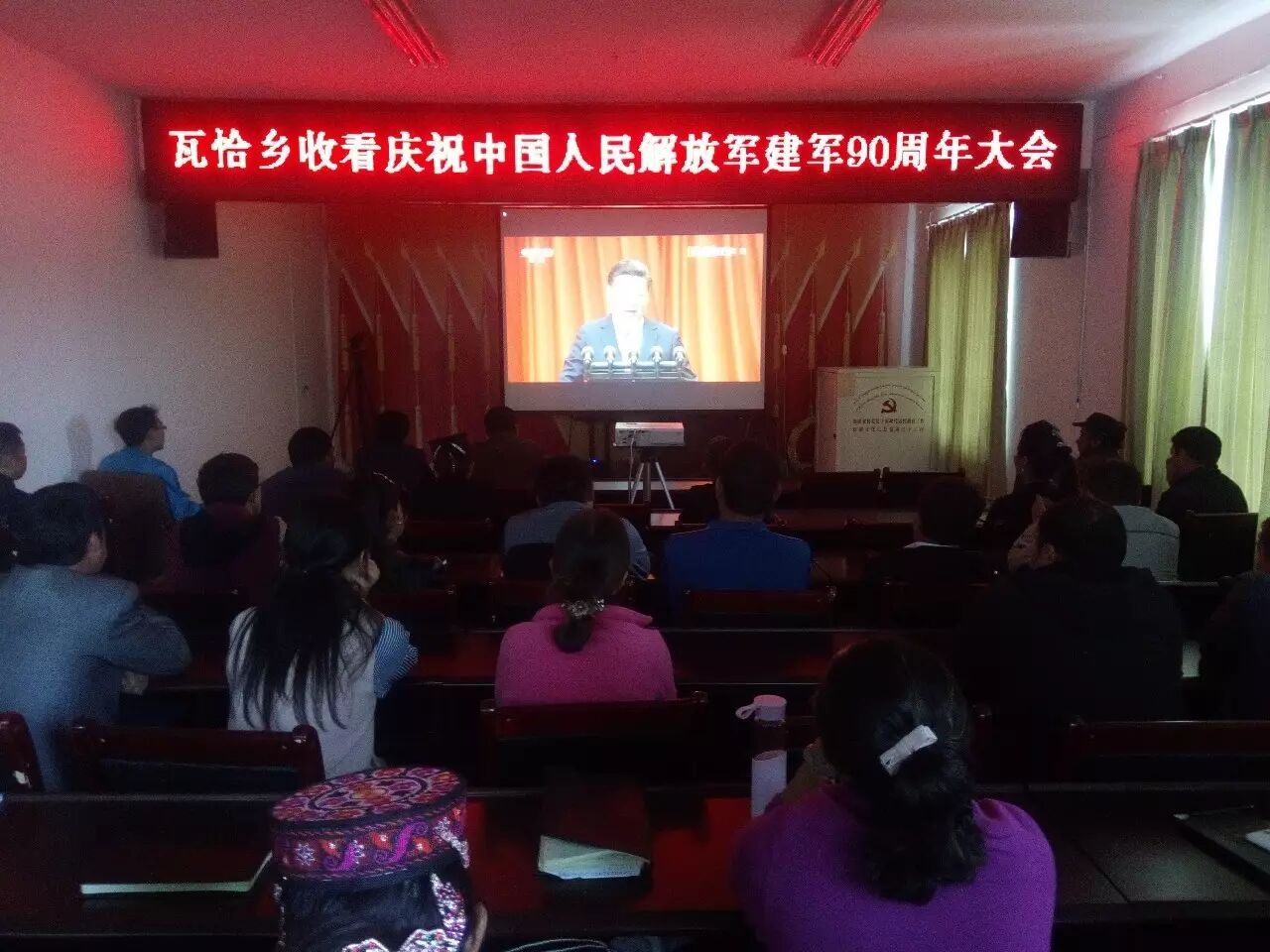瓦恰乡昆玉孜村干部非肉孜夏看完后说:“我们比历史上任何时期都更接近中华民族伟大复兴的目标,人民的军队将会更加强大。我们坚信,只要紧密地团结在习近平同志为核心的党中央周围,坚持中国特色社会主义不动摇,居安思危,不懈奋斗,我们一定能够实现中华民族伟大复兴中国梦。”(图/文 马少华 )瓦恰乡正在干部观看庆祝建军90周年大会直播。