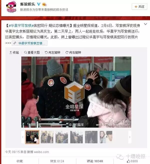 华晨宇邓紫棋恋情一经曝光,迅速上了微博热搜榜。上午9:15,@新浪娱乐发布《华晨宇邓紫棋亲密同行 疑似恋情曝光》,网友们瞬时炸了锅。