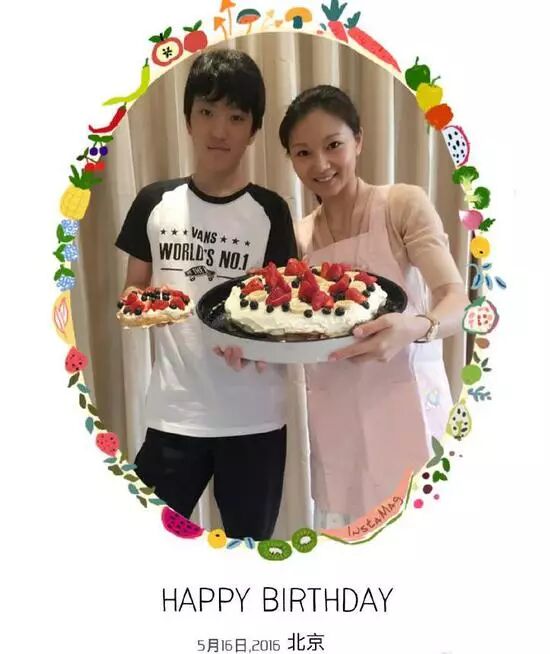 照片中,陈婷和爱子一起合影,张壹男身穿运动装手捧蛋糕,个子也已经高过妈妈,比老爸更加的帅气。照片中还有一个水果蛋糕。